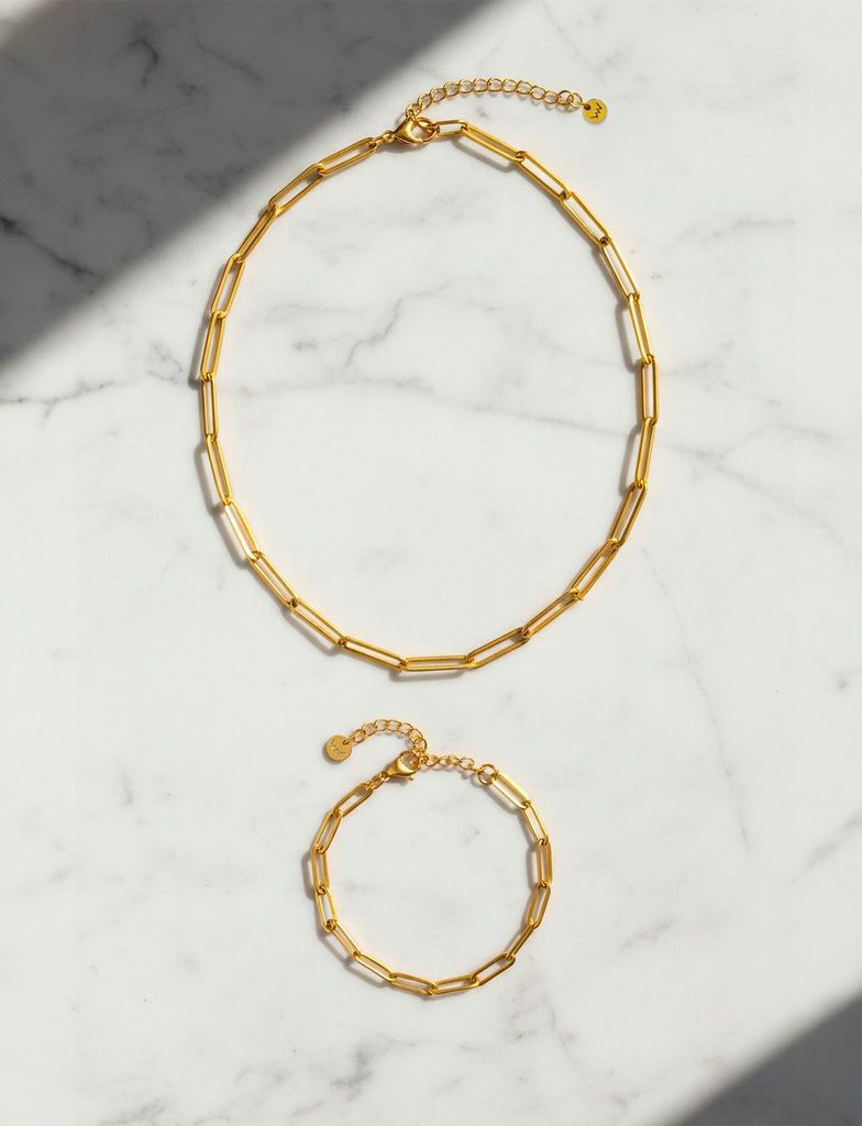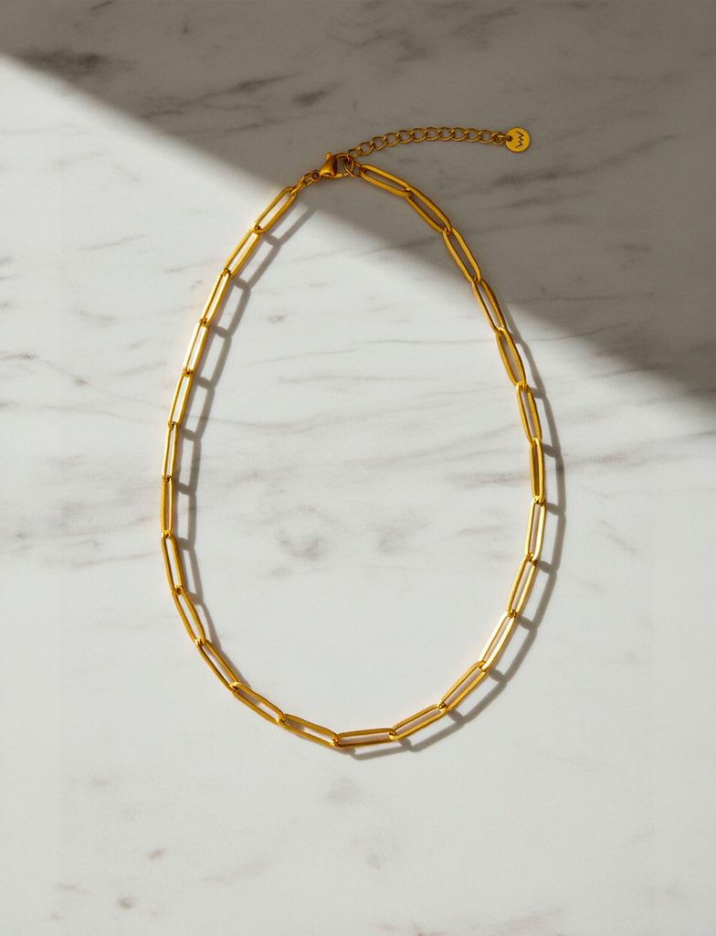 Minimalistyczny naszyjnik z dużymi splecionymi ogniwami, które działają jak cicha gra linii i przestrzeni. Każde ogniwo jest proste, ale razem tworzą rytm, który…