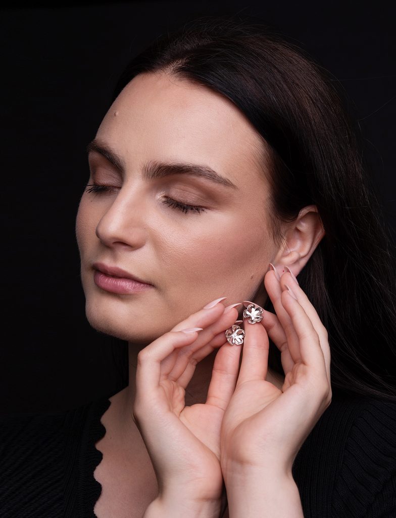 Więcej informacjiSrebrne kolczyki z cyrkoniami sześciennymi w kształcie kwiatu – delikatne piękno z aksamitnym podtonem. W kolekcji Mattéa, stworzonej z Adelą Pečlovą, kwiaty nie olśniewają blaskiem, ale przyciągają uwagę swoim cichym urokiem. Każdy detal nosi w sobie delikatność i siłę – kwiat i cyrkonie tworzą razem harmonię, która cicho wyróżnia się.