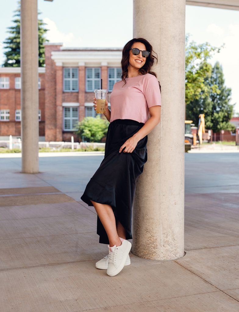 Każda wersja kolorystyczna sneakersów ma swój własny charakter – od klasycznej czarno-białej elegancji, przez figlarny fiolet, po delikatny róż i nowoczesny szary minimalizm. Wyższa podeszwa dodaje nowoczesnego wyglądu i komfortu na cały dzień.
