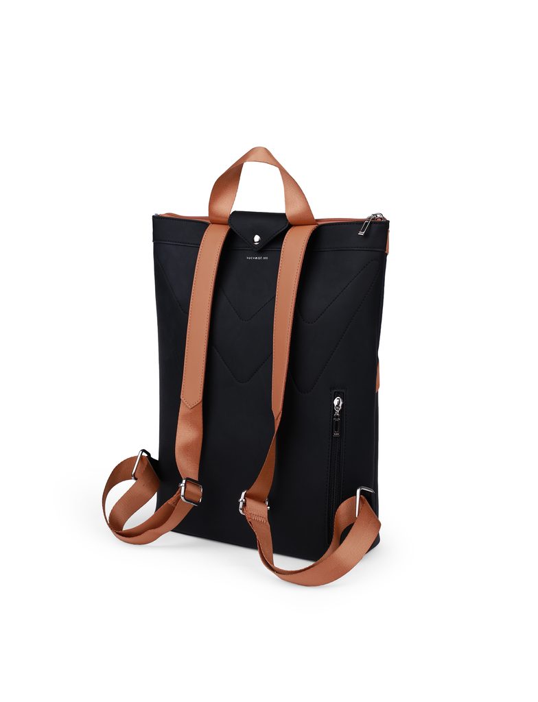 - Przednia zakryta kieszeń na zamek, wewnętrzna przegródka na mini notebook i mniejsza kieszeń na zamek
