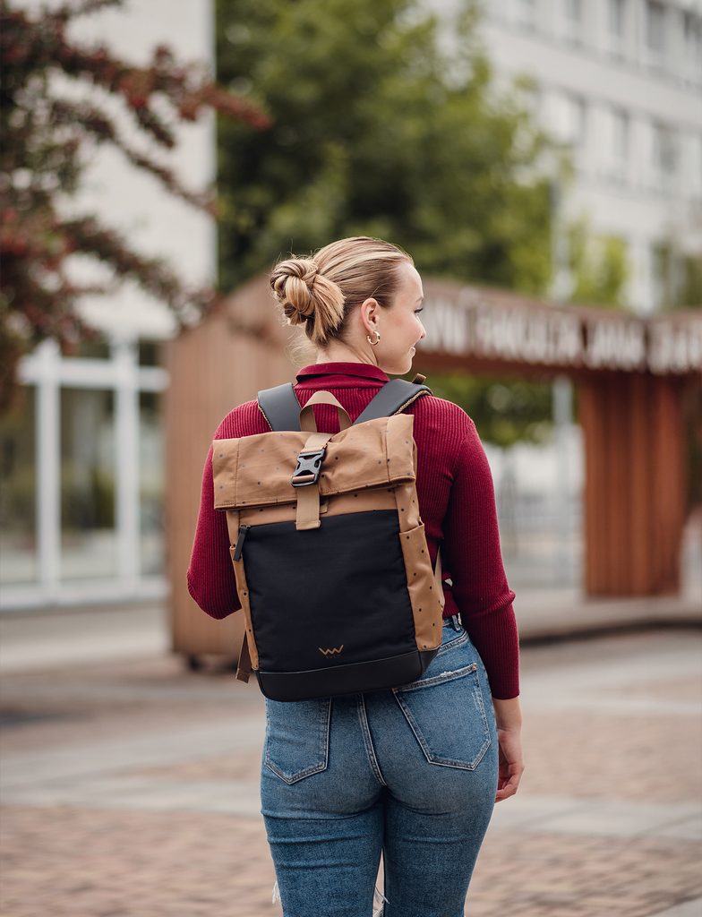 Więcej informacjiCzy planujesz przejść przez centrum, czy leśną ścieżkę, ten w kropki plecak będzie z Tobą dotrzymywać kroku. Dzięki zapięciu roll-top dostosuje się do tego, ile aktualnie potrzebujesz. Nie brakuje też wygodnych pasków i wystarczającej ilości miejsca wraz z przednią kieszenią. No to co, na wieżę widokową czy do miasta?