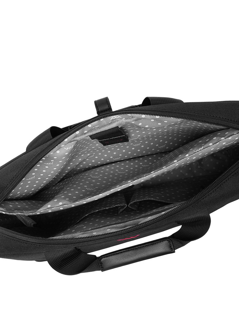 Tekstylna torba na laptop, która poradzi sobie z dniem pracy i podróżą pociągiem. Główna kieszeń na zamek schowa wszystko, co ważne, przednia mniejsza kieszeń pomieści…