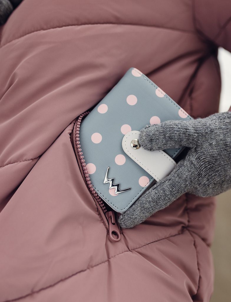 Letty Grey mały portfel w kropki zapinany na zatrzask