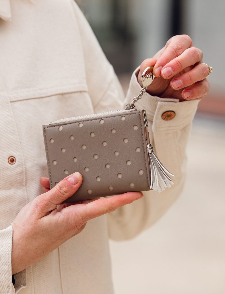 Niektóre portfele są po prostu praktyczne. Ten potrafi jeszcze dodatkowo wywołać radość życia. Kropki, frędzle i kolorowe detale sprawiają, że jest małym modowym…