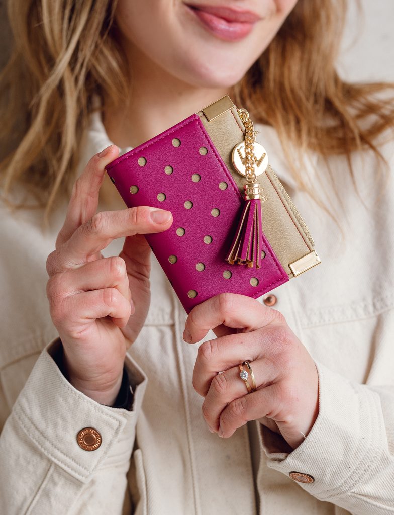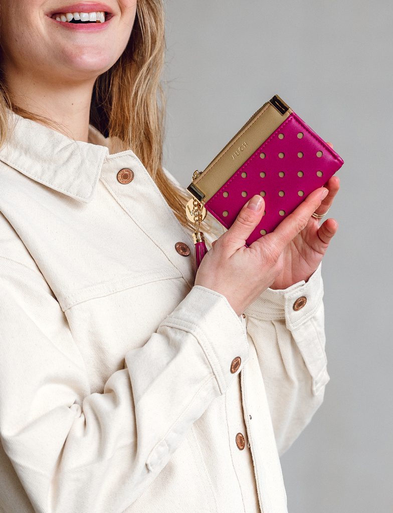 Shuri Dotty Pink portfel w kropki z ozdobnym logo