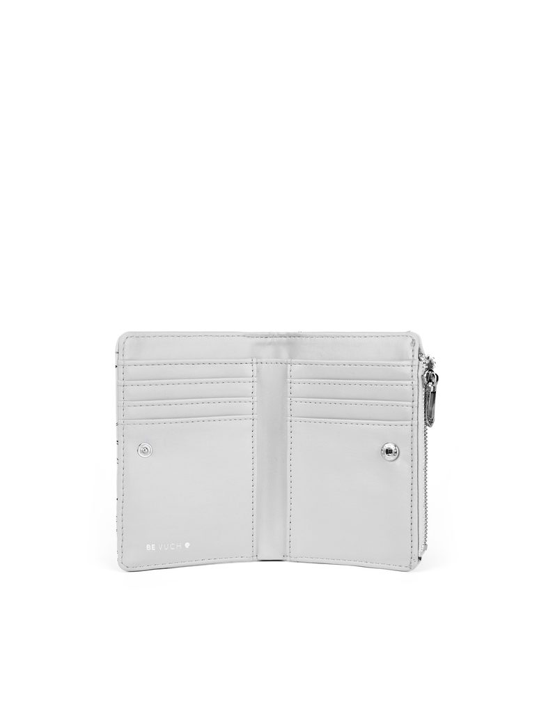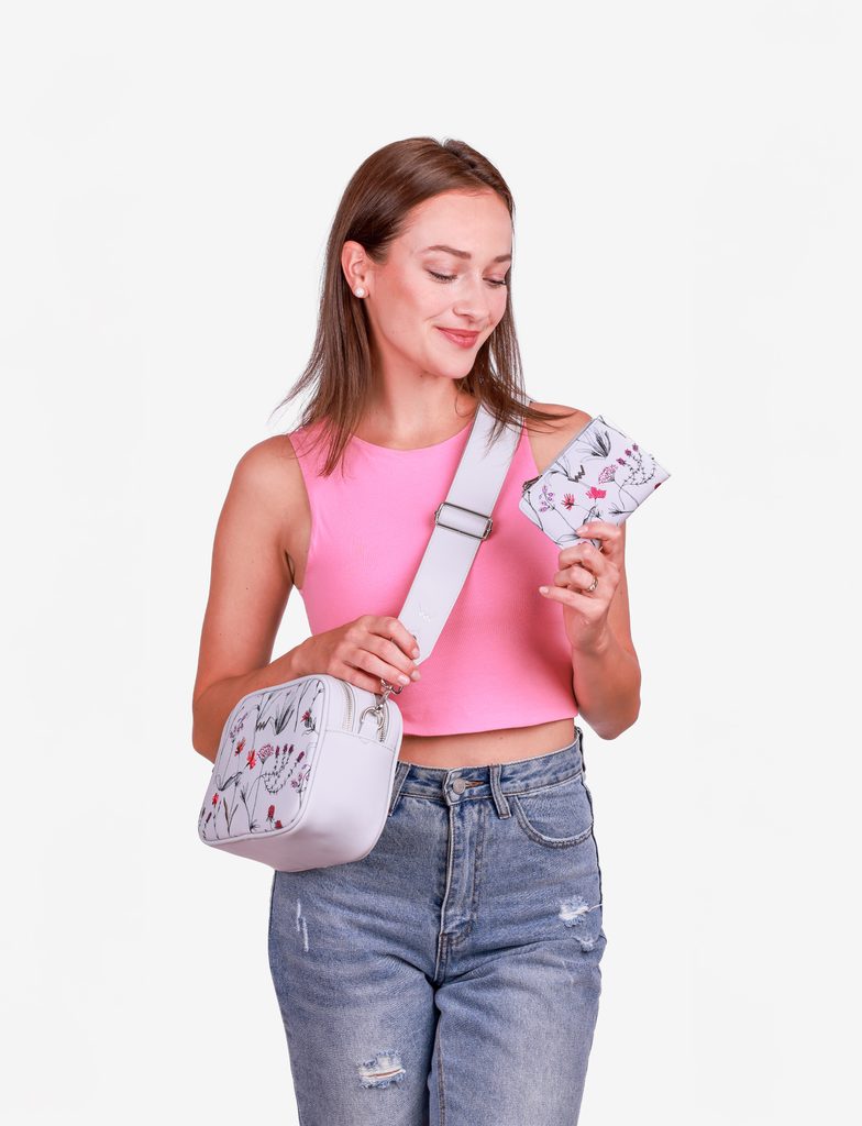 Korra Wildflowers Grey mini portfel z kwiatowym nadrukiem i haftem