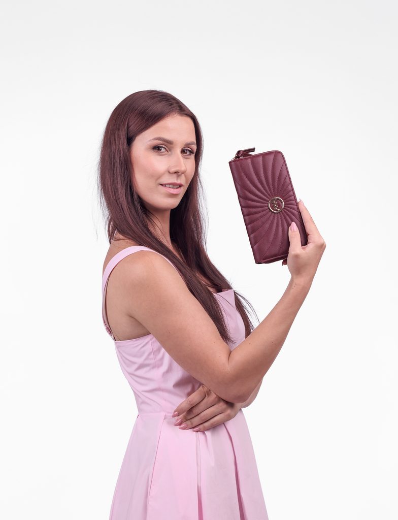 Mell Rays Wine elegancki pikowany portfel na zamek