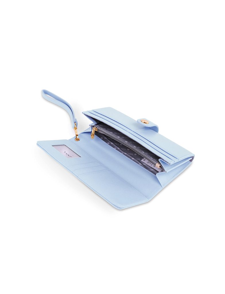 Aveline Blue duży skórzany portfel z paskiem na rękę