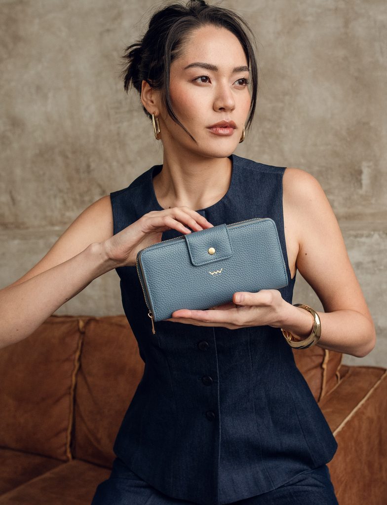 Sympa Grace Blue duży portfel ze skóry bydlęcej włoskiej