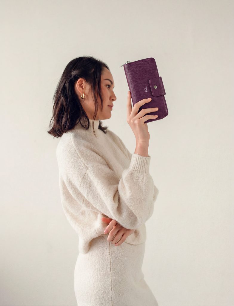 Sympa Grace Purple duży portfel z włoskiej skóry bydlęcej