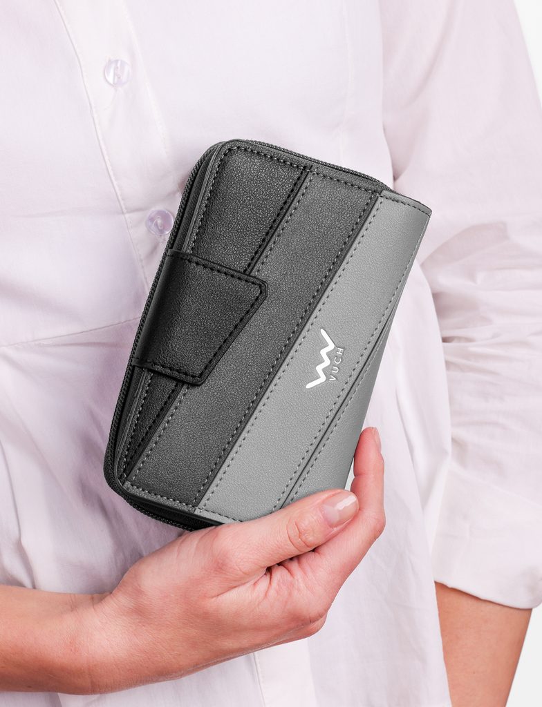„Złoty środek. Mądre przysłowie, które podobno głosił już Budda. My w Vuch wierzymy, że można je zastosować również do rozmiaru portfeli. Średni portfel zapewnia bowiem wystarczająco dużo miejsca na Twoje kosztowności, a dodatkowo jest kompaktowy. Nie musisz więc zastanawiać się, czy zmieści się do Twojej torebki. Wybierzesz portfel z dominującymi elementami, czy delikatnym designem? Zdecyduj sama."