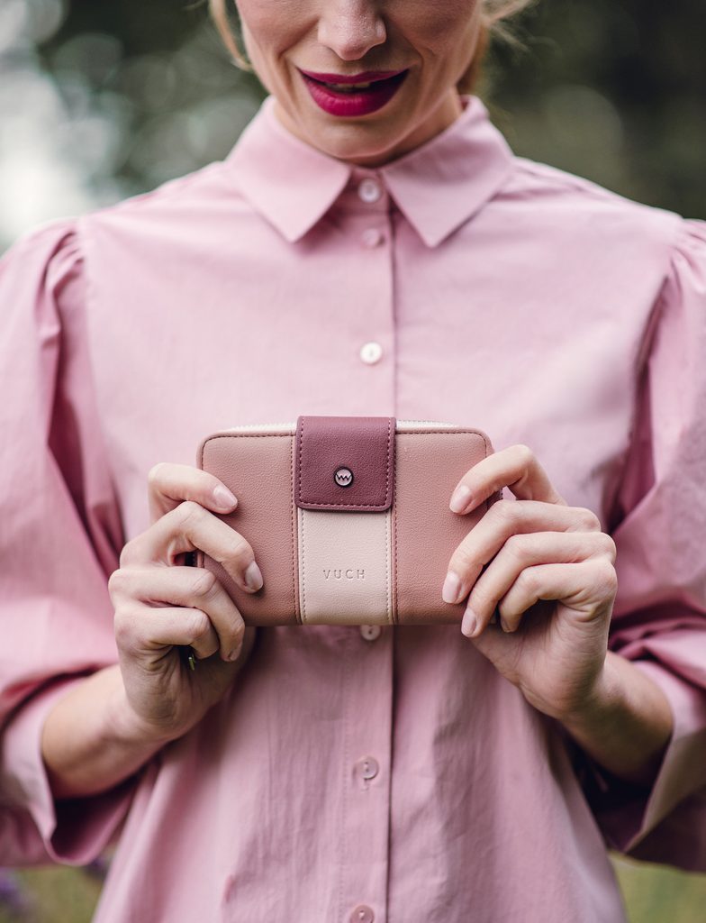 „Złoty środek. Mądre przysłowie, które podobno głosił już Budda. My w Vuch wierzymy, że można je zastosować również do wielkości portfeli. Średni portfel zapewnia bowiem wystarczająco dużo miejsca na Twoje kosztowności, a dodatkowo jest kompaktowy. Nie musisz więc zastanawiać się, czy zmieści się do Twojej torebki. Wybierzesz portfel z dominującymi elementami, czy delikatnym designem? Zdecyduj sama."