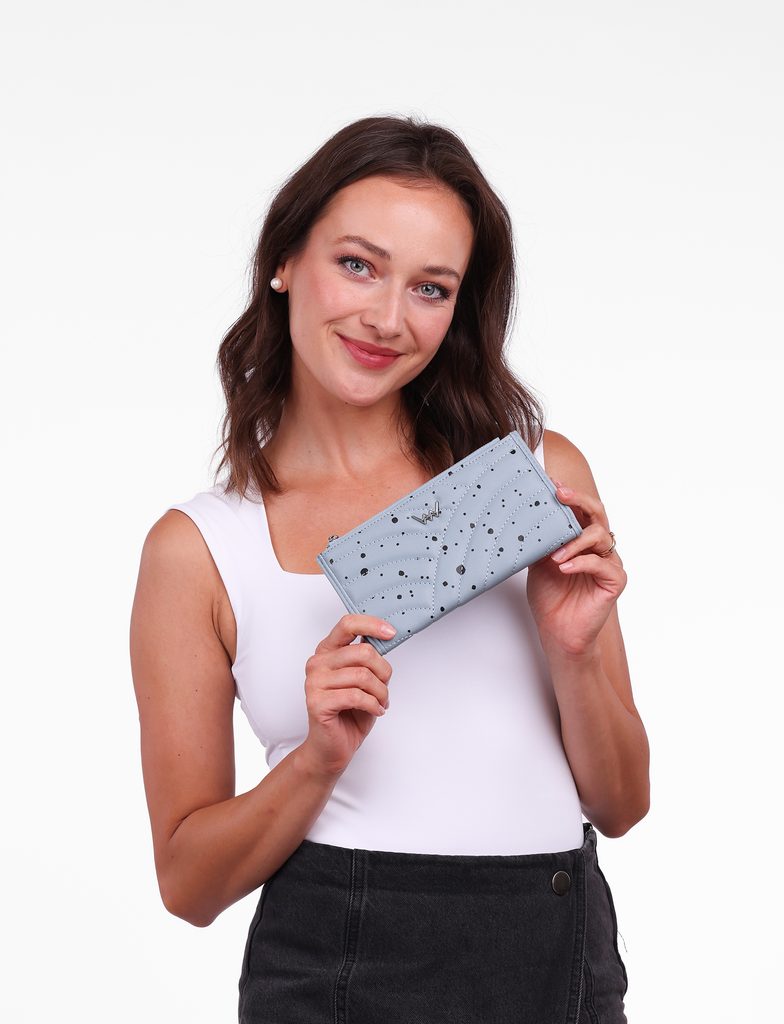 Odkryj piękno kropek w niedoskonałości kształtów z dużym portfelem Bona. Wyróżnia się nieregularnie rozsianymi kropkami i miękkim materiałem, który chce tulić się do…