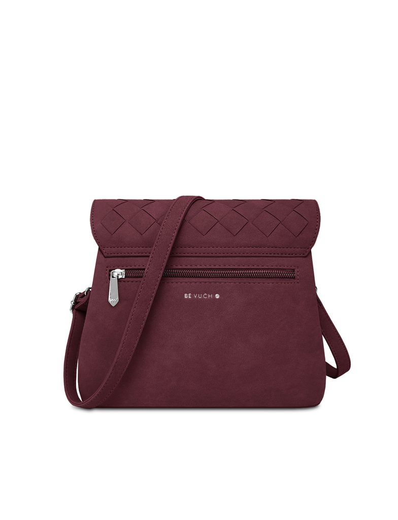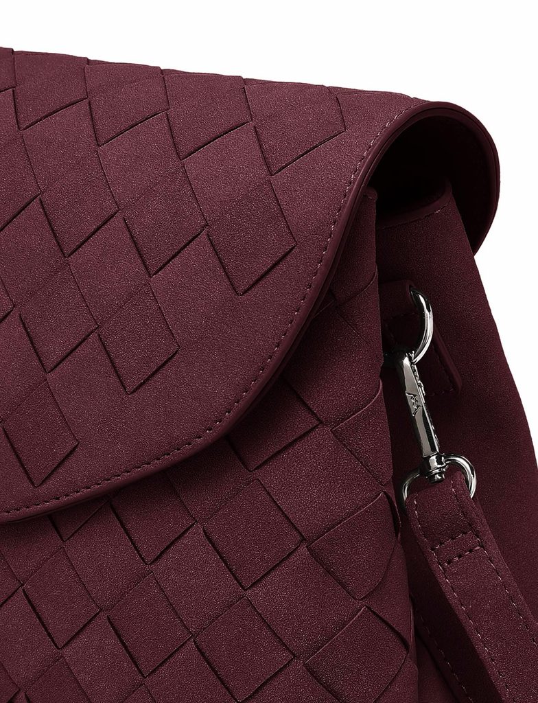 Byrsa Intrecciato Wine Red zamszowa torebka crossbody ze splatanym wzorem
