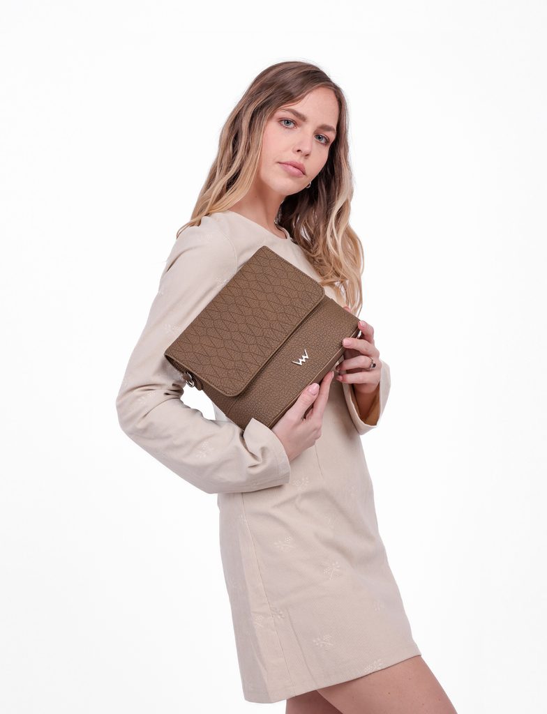Cara Cornet Brown torebka crossbody z geometrycznym wzorem