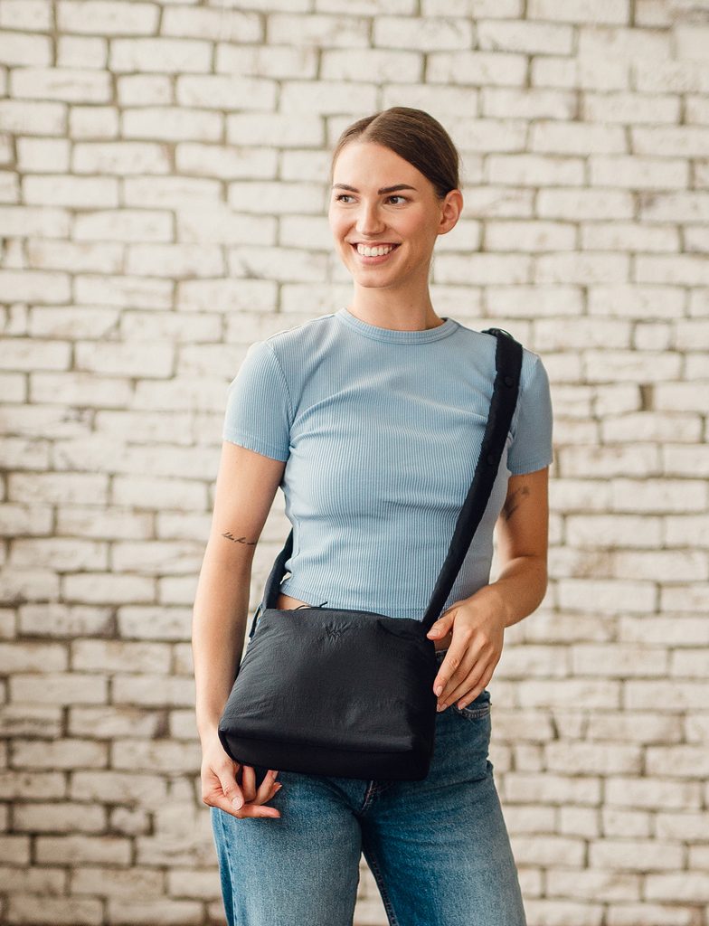 Cara Fluffy Black torebka crossbody z lekkiego materiału