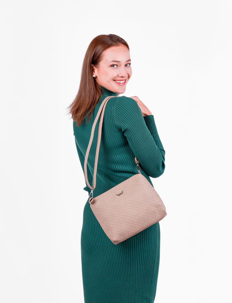 Więcej informacjiDelikatny beżowy kolor z subtelnym geometrycznym wzorem i srebrnymi detalami łączy elegancję z nieformalną lekkością. Zamek głównej kieszeni chroni Twoje drobiazgi, a pasek przez ramię zapewnia wygodę i swobodę ruchu. Wystarczy ją wziąć i wyruszać. Bez słów, tylko z poczuciem, że wszystko ma swoje miejsce.