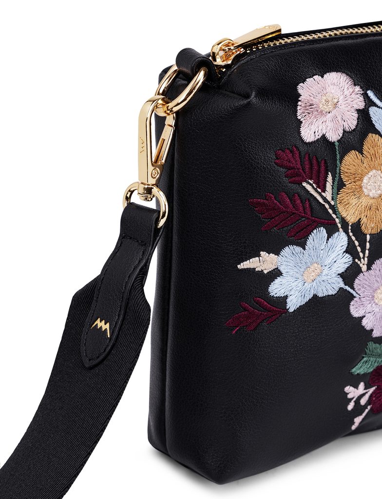 Coalie Flowers Black torba crossbody z kwiatowym haftem