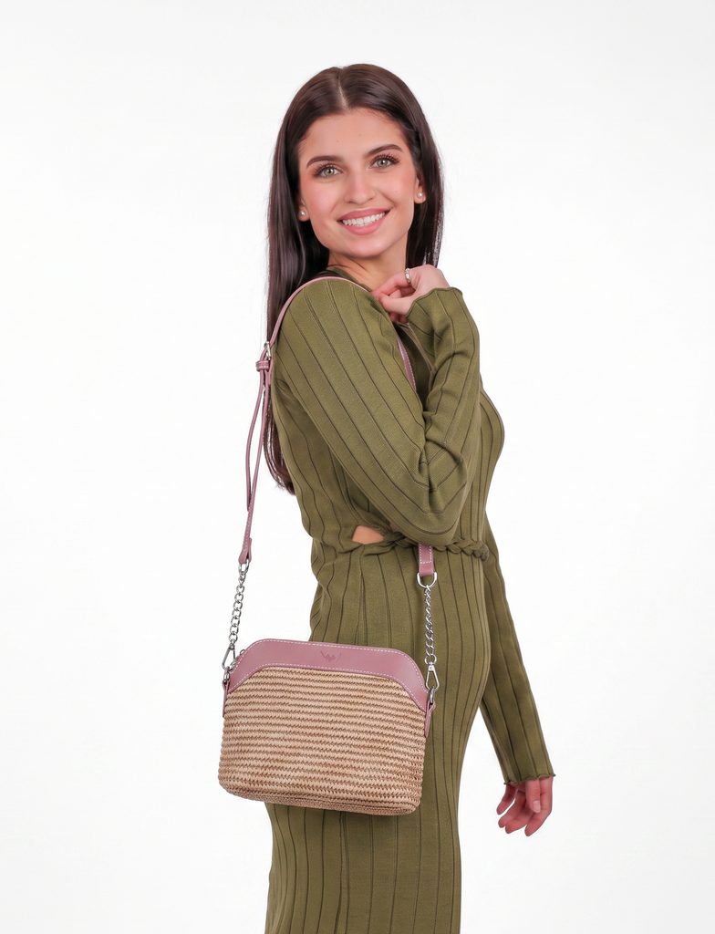 Fossy Mini Rio Pink torebka crossbody z rafii