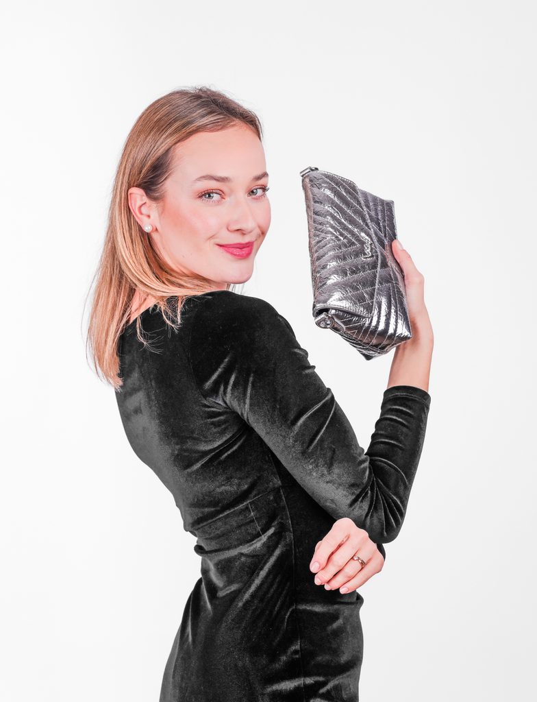 Dazzling Silver to nie cicha torebka do kąta. To model, który domaga się świateł reflektorów. Ma osiem przegródek na karty, dużo miejsca na niezbędne rzeczy i pasek, który dostosujesz do siebie. Ta torebka to po prostu odrobina blasku i dużo pewności siebie w jednym praktycznym opakowaniu.