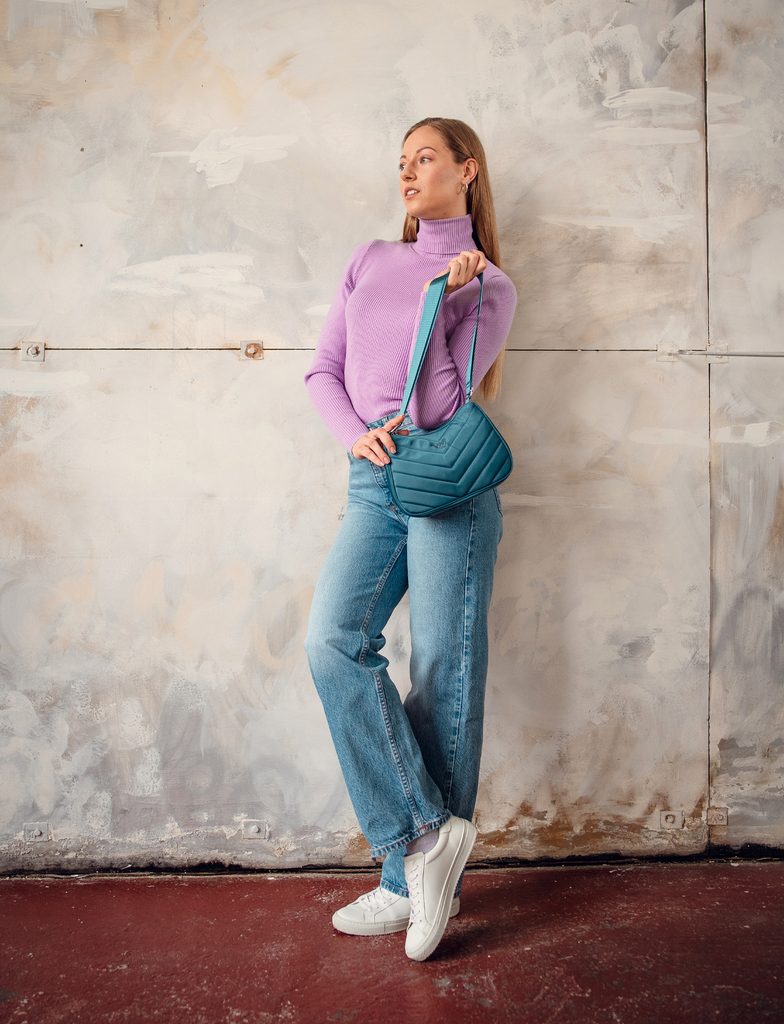 Ton w tonie. Tak można opisać grę kolorami przy crossbody torebce Liva. Metalowe logo przy każdej wersji kolorystycznej doskonale łączy się z kolorem torebki. Pikowanie…