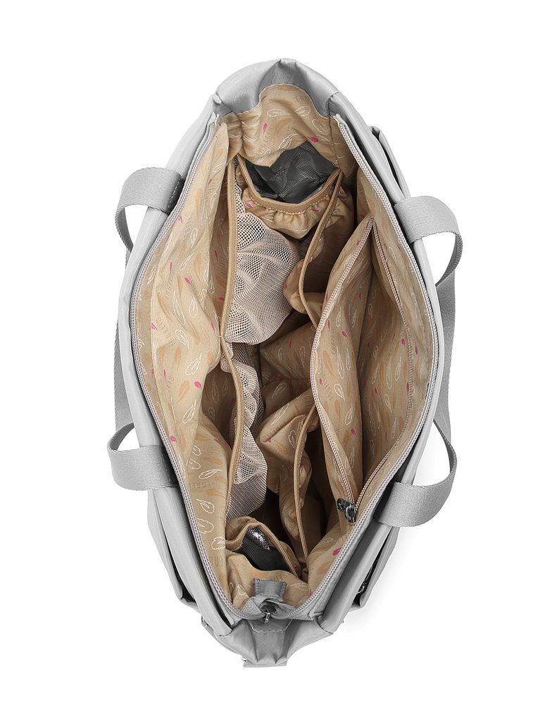 Torba zaprojektowana do codziennych przemieszczań z wózkiem i bez niego. Dzięki kilku paskom możesz nosić ją klasycznie w ręce, przez ramię lub za pomocą specjalnych uchwytów przypiąć bezpośrednio do rączki wózka. Boczne kieszenie pomieszczą butelkę lub drobiazgi, które chcesz mieć pod ręką, a główna przestrzeń na zamek utrzyma wszystko bezpiecznie w środku. Elegancka, praktyczna i gotowa na Twoje tempo.