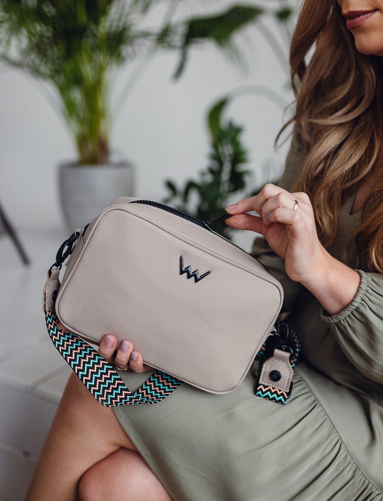 Sigi Beige crossbody torebka z kolorowym paskiem