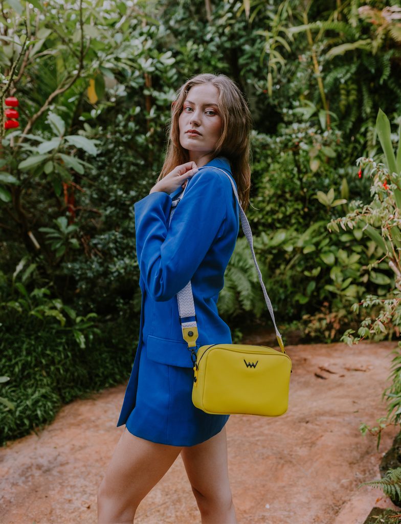 Sigi Yellow crossbody torebka z kolorowym paskiem
