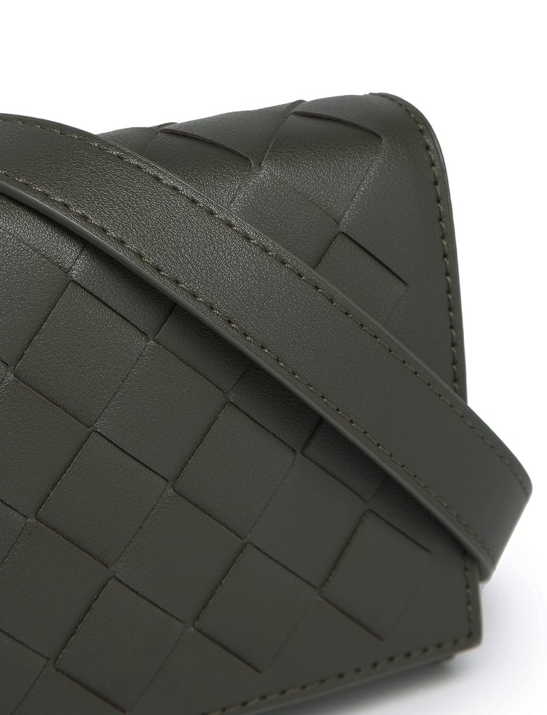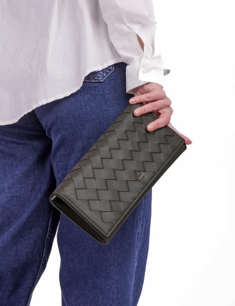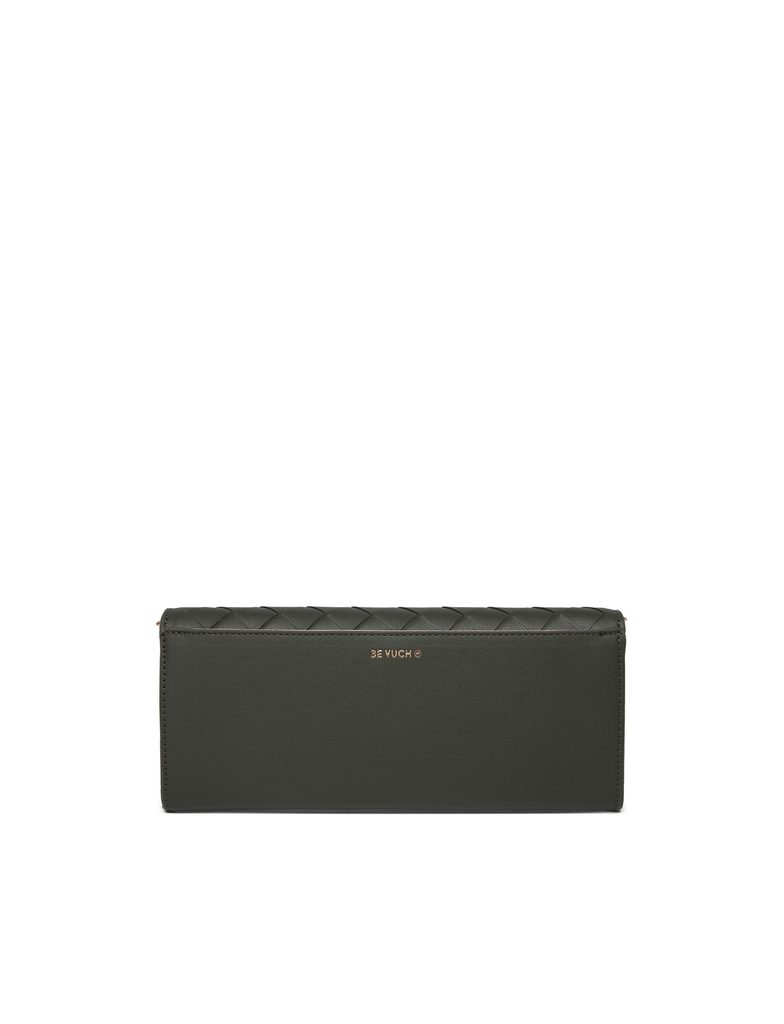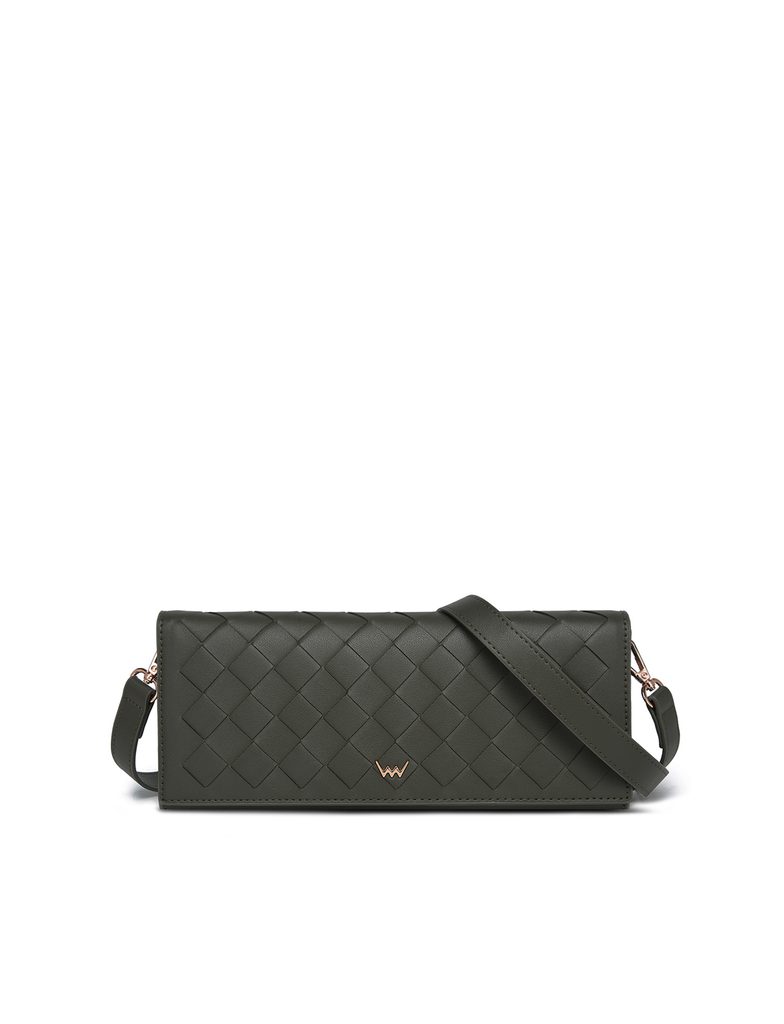 Emeroo Intrecciato Olive elegancka kopertówka z plecionym wzorem