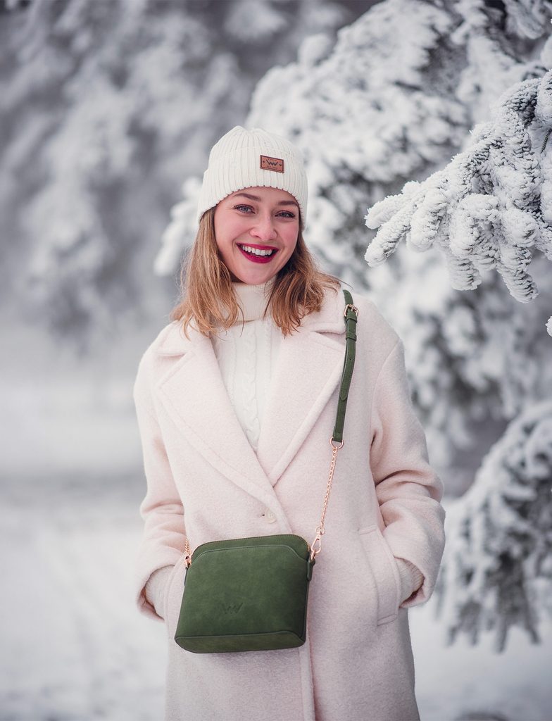 Fossy Mini Suede Green zamszowa torebka crossbody z łańcuszkiem