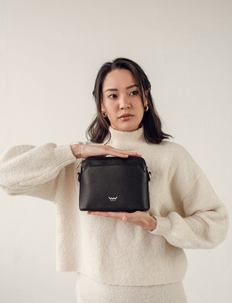 Fossy Mini Grace Black mała torebka crossbody z włoskiej skóry bydlęcej
