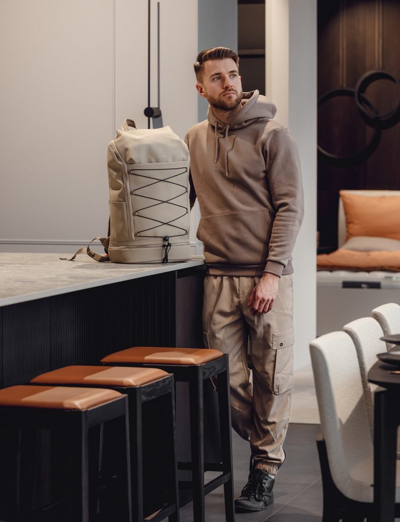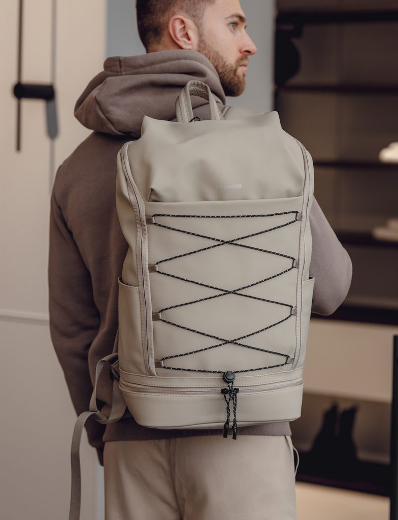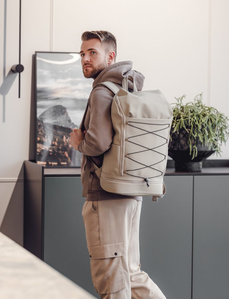 Więcej informacjiWygląda jak plecak, funkcjonuje jak walizka. Nie potrzebujesz kółek, gdy masz mocne plecy i plecak o pojemności bagażu podręcznego. Gumowana powierzchnia przetrwa deszcz i zakurzoną drogę, a sznurkowe detale nadają mu sportowy charakter. Dzięki przestronnemu wnętrzu i dużemu zamkowi łatwo spakujesz laptop, ubrania i codzienne niezbędniki. A przy tym nadal wyglądasz jak pan sytuacji.